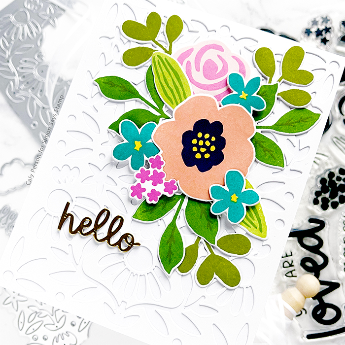 This card uses the Flower Medley flowers that I stamped using C9 inks. For the background, I simply die-cut the Enchanted Garden Dies for a simple tone-on-tone background. The sentiment is from the Short & Sweet Dies.