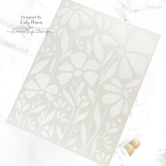 This is so pretty! I was impressed with how easily this made a super-cute card at CREATE. I think it’s the bright lights from photographing it, but I would not have known that this was Fog cardstock if you had not told us. I can give this a try when I get a minute. I will likely order this stencil set. GREAT job, Caly!