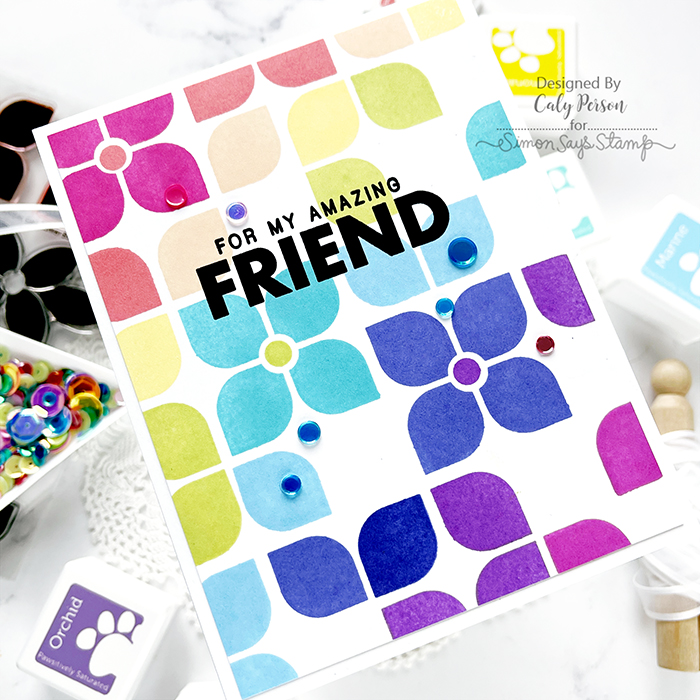 My card today is one-layer! I took my time stamping these geo shapes in rainbow colors using 3 dies from the Geo Flower Building set.