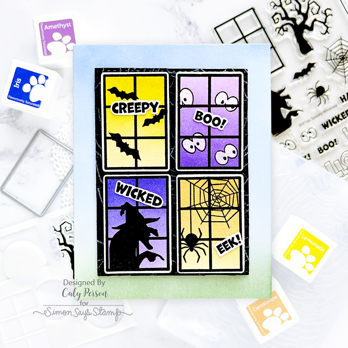 I also have a simple card to share today using the Spooky Window set from the STAMPtember® release. This set includes a stamp, die, and stencil.