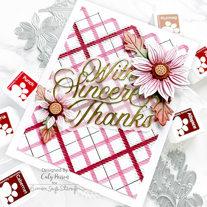 I’m sharing another card that uses product from the STAMPtember® release. The Rustic Layering Flower die lends to fall vibes, so I used the new Red Earth cube set to ink-blend all the flowers and leaves.