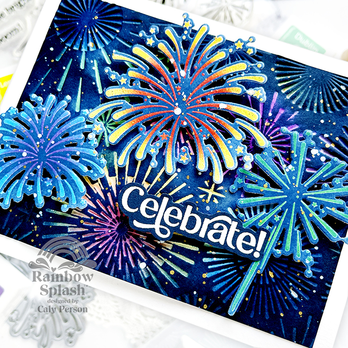Today’s STAMPtember® surprise is a mini Rainbow Splash release! I used the Firework Sparkle set with the Magnificent Bursts embossing folder to create a festive card.