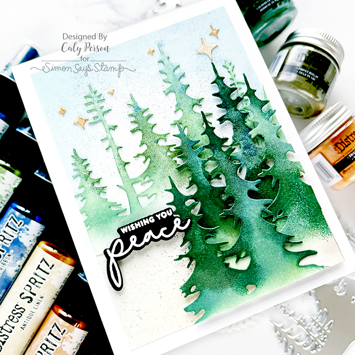 I used the Tim Holts/Sizzix Forest Shadows dies to add color with the new Distress Spritz colors and with recently released Distress Embossing Glazes to add texture and shine.