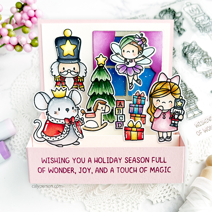 Today’s card is extra special to me. My daughter has been doing ballet for 3 years and this year, she is performing for the first time in The Nutcracker. It’s a small role, but special nonetheless. When I saw The Nutcracker Mama Elephant set, I just knew I had to have it!