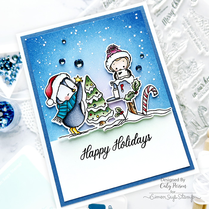 Today’s card uses the Jolly Christmas set from the Festive Friends release. This 6”x8” set features several individual holiday images and I’ve combined two on my card.