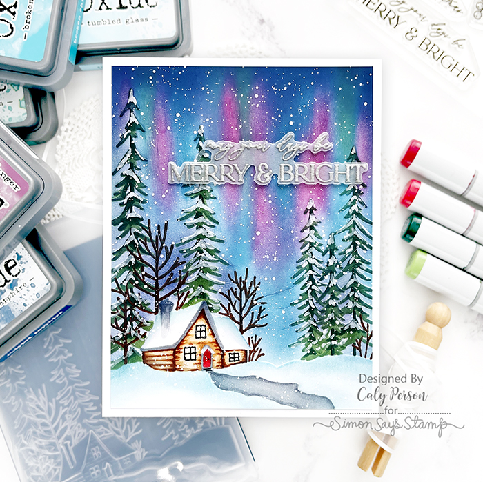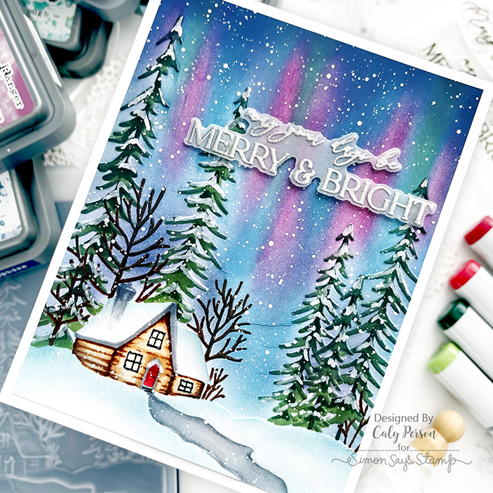 This year, we had two opportunities to view the Northern Lights here in the US. I was unable to see them clearly, but using my camera, I was able to capture a tad of color. I was really bummed because I wanted to see what others were posting on social media! When I saw this Wooden Cabin Embossing Folder, I knew right away that I wanted to make a colorful sky.