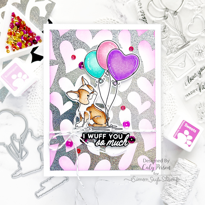 The background uses the Falling in Love Foil Transfer Cards that I foiled with some Glitzy Silver Cheerfoil using my Fuse Foiling Machine. You can ink-blend right over foil since it resists ink, but if you’re more comfortable using a stencil, The Falling in Love Stencil coordinates with the foil transfer cards. I added an embossed sentiment, some Hot Tamale Embellishments and wrapped some silver twine around the card panel before attaching it to a card base.