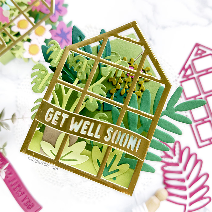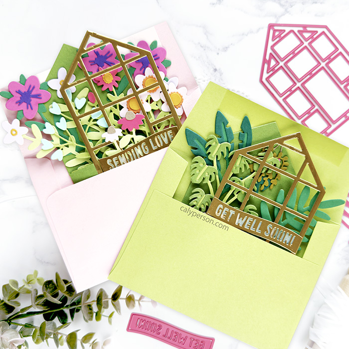 I’m sharing two fun pop-up cards today using new die sets from Pink & Main! The release just dropped and it’s available now! The pop-ups create greenhouses full of tropical plants, as well as flowers.