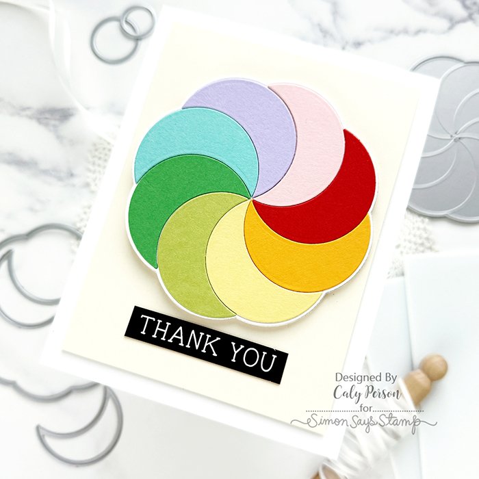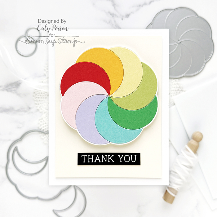 The Simon Says Stamp Favorite Things release is here! It’s been a bit longer than usual since we’ve had a release so I hope you’re excited for all the inspiration to come! This card uses the new Petal Builder dies and Petal Pattern stencil/die combo. This gives you the option to die-cut colored cardstock or color each petal using a ink. The coordinating products are so fun and I’ve created a mechanism under my petal so that it spins. I used Fun Foam and the Basic Shapes Circles to create my mechanism.
