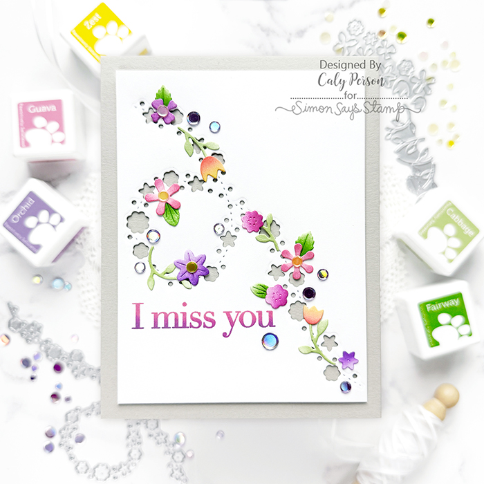 My simple card today uses two simple die sets from the Simon Says Stamp You Are My Favorite release. The Flower Breeze die is first die-cut into a white panel, then I used the Sweet Tiny Flowers to layer on top along the Flower Breeze. Super simple!