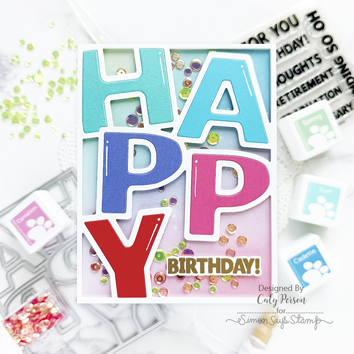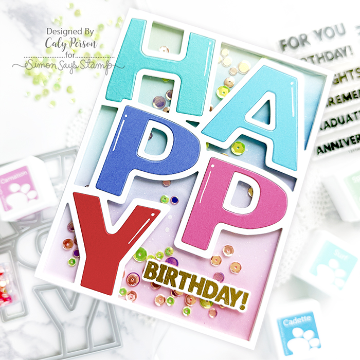 Today’s Simon Says Stamp Moments in Time release card uses the Happy and Happy Cover coordinating products. The stamp set covers all the major “happies” and makes this set versatile. I’ve turned it into a colorful shaker card.