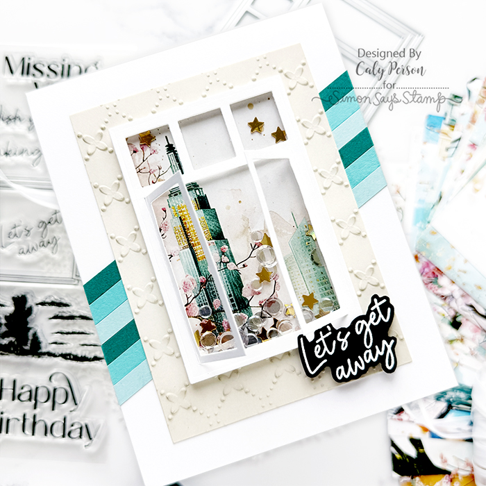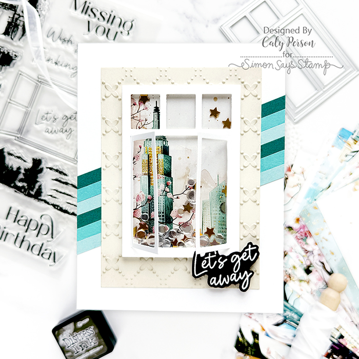 A new Simon Says Stamp card kit reveal is here! The July 2025 card kit features a window theme with the Through the Window set as the main focus.. The stamp set provides different scenes you can use, but I used patterned paper from the kit, which has beautiful city scenes in colors I love. There are three window dies to choose from with the Window Trio set, so you can get a variety of window looks. My card below is a simple one and I’ll have more to share next week. Be sure to check out the full release, available for order now!
