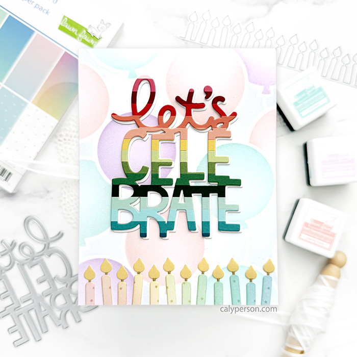 The Lawn Fawn June release is here. It’s filled with a wide variety of festive and celebratory products. As you can see, we’ve got traditional balloons and candles, fun pinata, bubble tea, and adorable capybaras. Details for each card are provided below with product links.