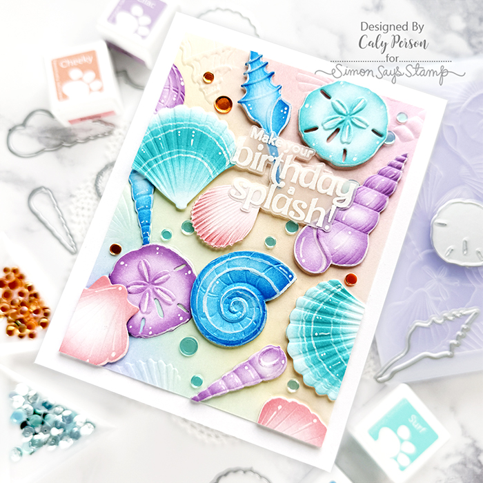 I’m so excited to share today’s colorful card with you! I love a good embossing folder with coordinating dies – especially ones that create a background like the Sensational Seashells from the Simon Says Stamp
