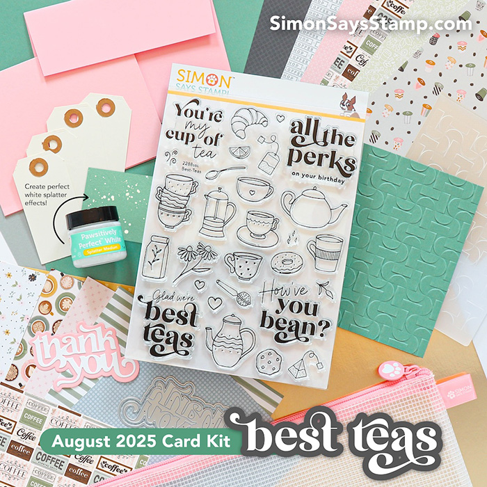 The Simon Says Stamp August 2025 Card Kit – Best-Teas is here! It’s a sweet tea/drink/coffee set that’s really sweet, and I hope you’ll find inspiration to create! My project uses only contents from the release (except the Copic markers), so there’s plenty here to help you create!