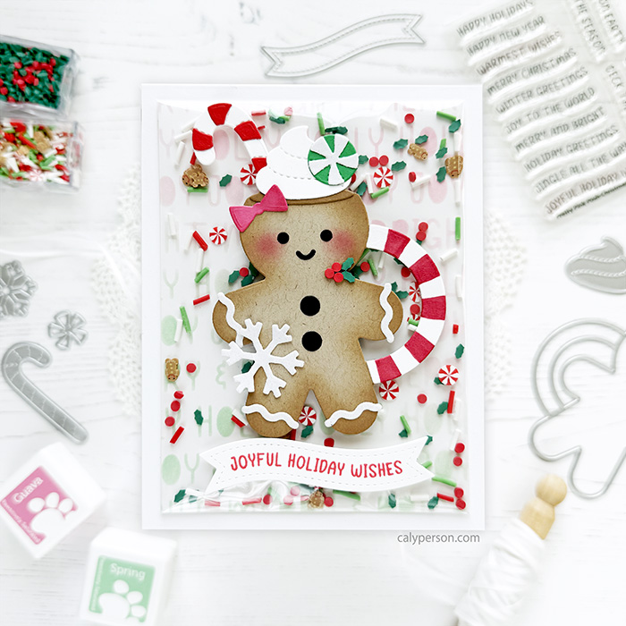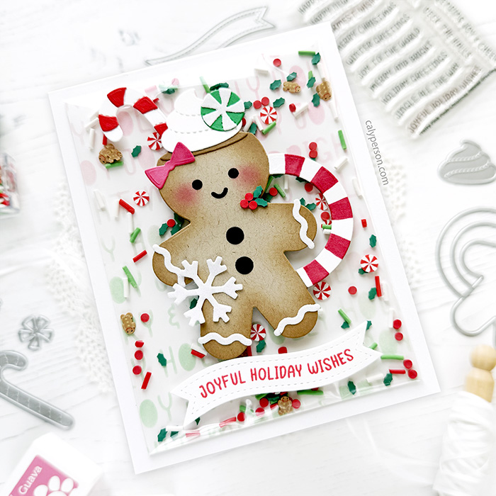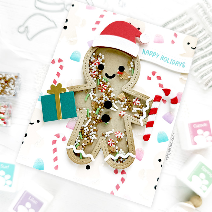 There’s a Gingerbread Holder die that I didn’t get to make the center of my card because I really wanted to use the shaker die, but I used accessories from the set so my Gingerbread Shaker can hold fun things, too!