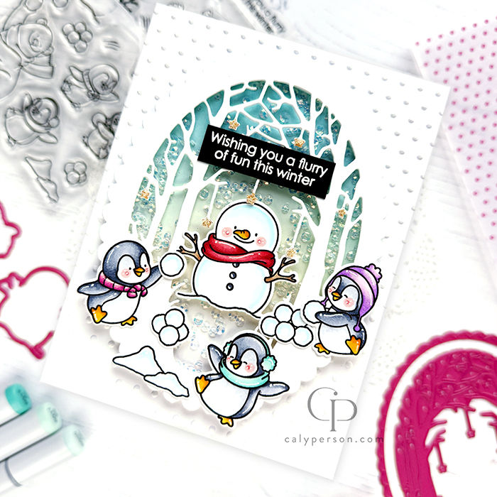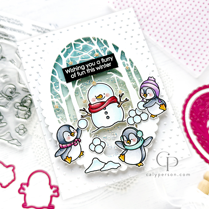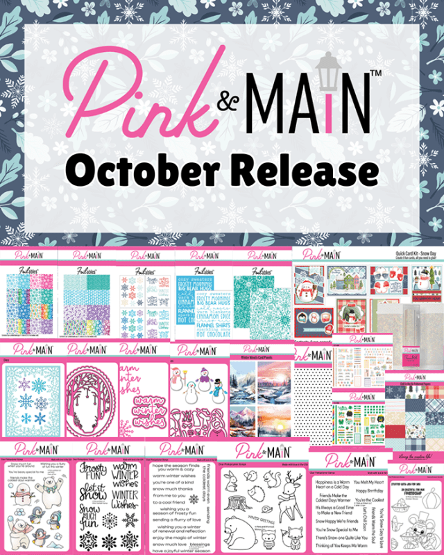 Welcome to the Pink & Main October release! My card uses the adorable Flurry of Fun set and I turned it into a shaker card using the Oval Forest View Dies. Be sure to check out the full release, available now!