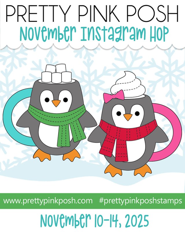Last week, I shared a project using a few products from the latest Pretty Pink Posh November 2025 release as a part of a YouTube video hop! Today’s projects are a part of an Instagram hop. The penguins in all three projects come together in a similar manner, so if you want to see that video, be sure to check it out! I’ll link it below for you.
