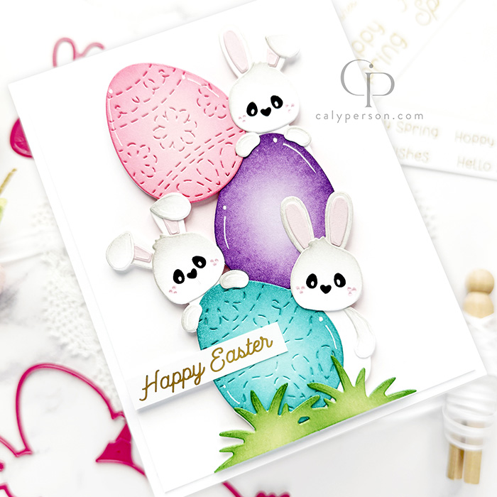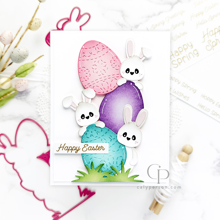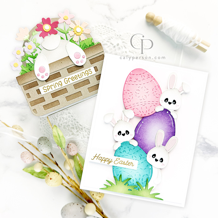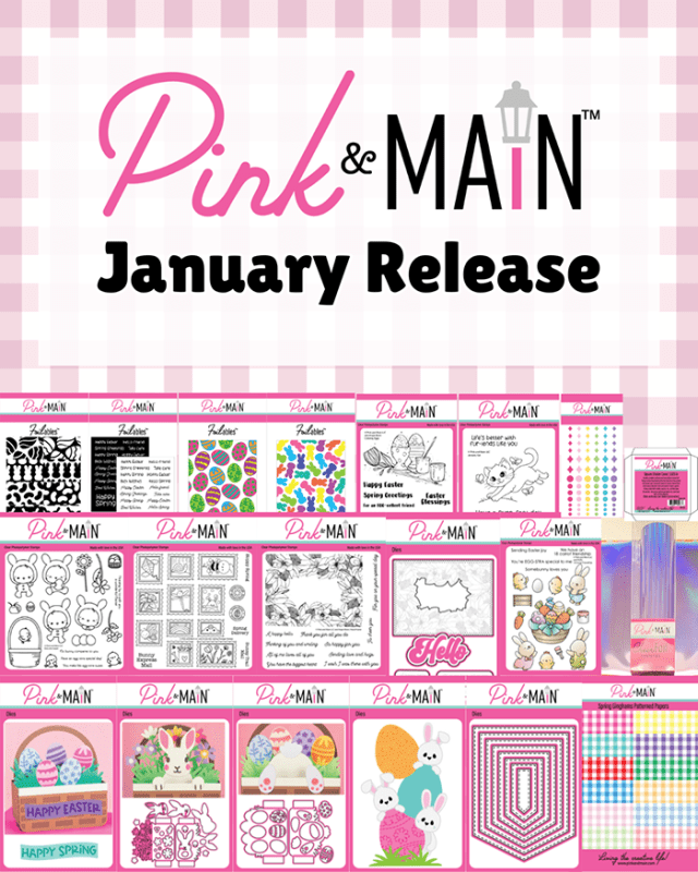 I’m sharing two cards today using products from the latest Pink & Main release. This release features adorable Easter/Bunny products. Details for my cards are provided below.