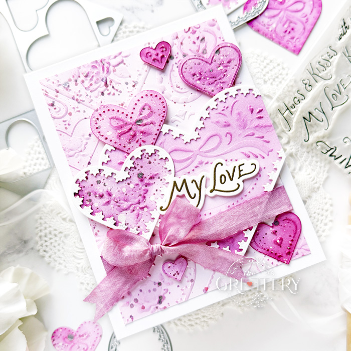 I combined the Bitty Blooming Hearts set with the Diamond Hearts set for this card. If you like it, stay tuned because a full YouTube video is coming!