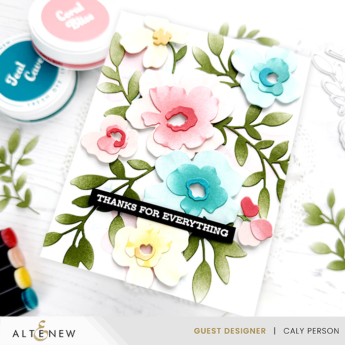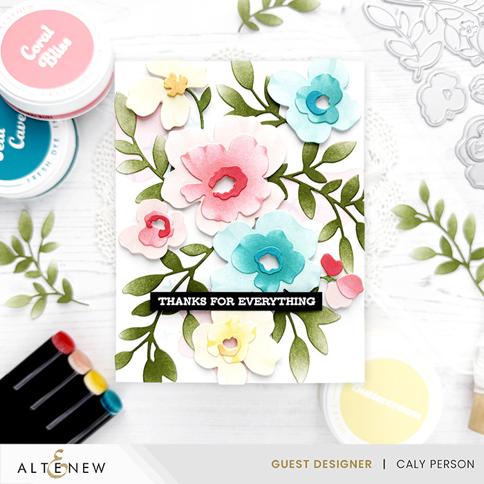 - ALT Fresh Dye Inks: Blush, Coral Bliss, Crimson, Caramel Toffee, Warm Sunshine, Buttercream, Dew Drops, Lagoon, Teal Cave, Green Opal