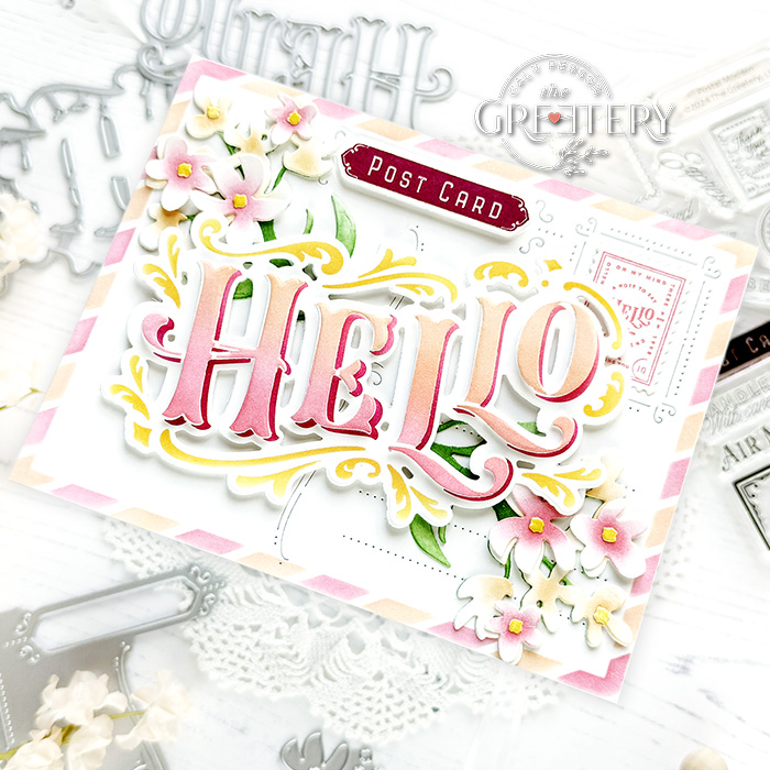 I shared this card and video for The Greetery recently and want to share it here with you today. This Flourished Hello card combines several products. A list is provided below and you can see it come together in my video. I hope you enjoy it!