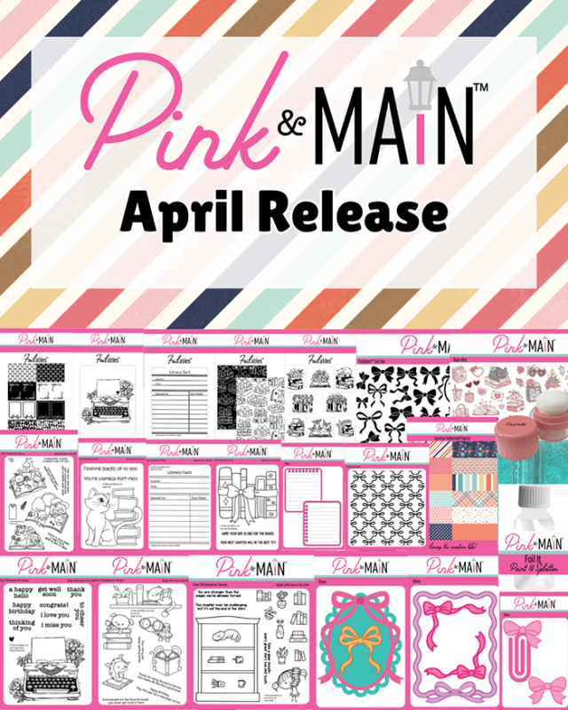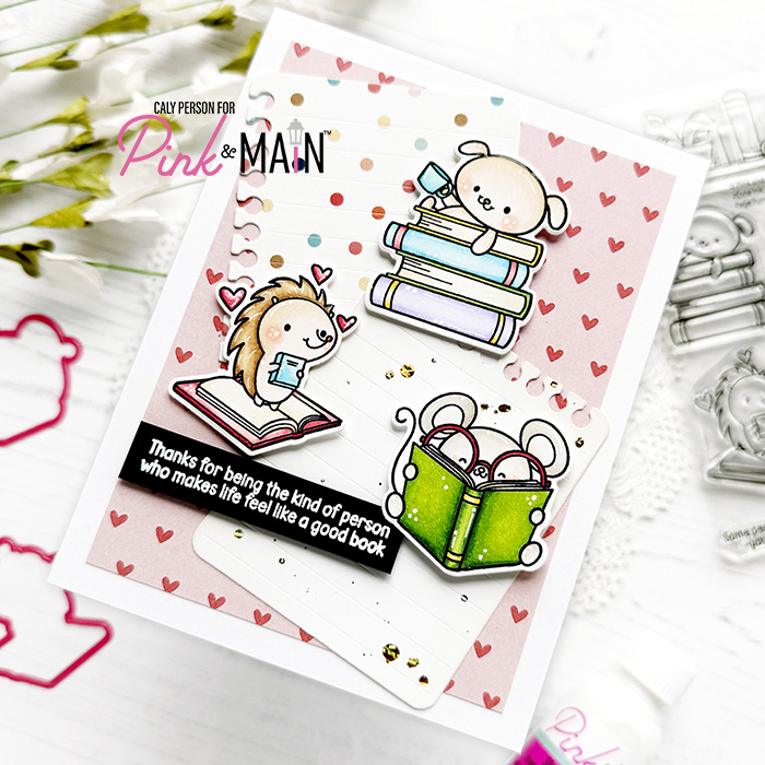 The Pink & Main May release is here and I have a card to share using a few new products! I used OLO Markers to color the Page Turner stamp set. The new Foil It! Paint & Splatter medium is a medium that dries sticky so you can foil it. I splattered it over a Note Page and foiled it with Gold Tinsel Foil.