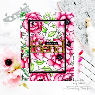 Hello there! Last week, I mentioned that I was playing with new techniques using background cling stamps. Today’s card uses the Delicate Outline Flowers cling stamp – another favorite of mine! For this card, I stamped and colored my image with Copic markers. Flowers: RV21, RV23, RV25, RV29Grays: C3, C6, C8Greens: [G40, G43, G46], [YG11, … More Simon Says Stamp – Delicate Outline Flowers