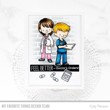 Hello, Friends! A few releases ago, My Favorite Things released a few sets for healthcare workers. This month, we’ve got similar sets with the opposite gender! Loving that there is equal representation! To create my scene today, I stamped and colored my images with Copic markers. After coloring and die-cutting, I added white gel highlights … More My Favorite Things – November 2019 Release: 3 Days Until the New Release – Super Heros in Scrubs & Doctor’s Orders