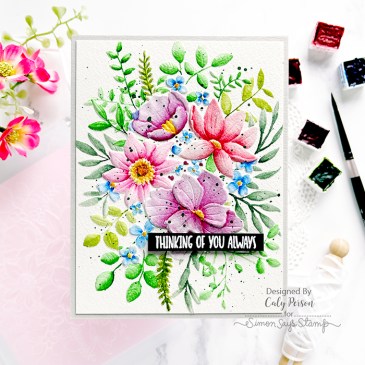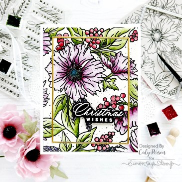 Hi there friends! Today’s card uses the Anemone Wreath set from the To Love release. This 6″x6″ photopolymer stamp would be great for larger sized cards and square cards. I stamped the Anemone Wreath image over watercolor paper and watercolored with Daniel Smith Watercolors. Daniel Smith Watercolors used: Permanent Violet, Sap Green, Hooker’s Green, Mayan … More Simon Says Stamp – Anemone Wreath