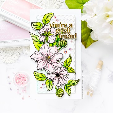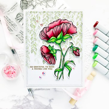 Hi, Friends! Welcome! I have another stenciled card to share with you today! Pinkfresh Studio has a multitude of coordinating products now that include stamps, dies and stencils and I can’t help getting set where pretty flowers are involved – especially ones that are illustrated by my friend, Emily Midgett. Emily illustrated these Butterfly Ranunculus … More Pinkfresh Studio – It’s a New Day