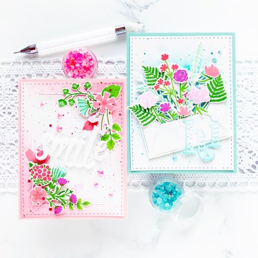 Hi, Friends! I’m on the Pinkfresh Studio Blog today and wanted to stop by to share some photos and the supplies list. Be sure to check out the Pinkfresh Studio Blog for details! I created two cards using layered blooms over die-cut elements as accents. My first card is framed with a Frame Builder – … More Pinkfresh Studio – Wild Flower Sketches and Lovely Blossoms