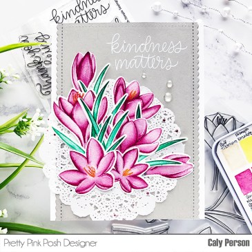 Hi, Friends! I’m at Creativation today but wanted to stop in and share a card that I watercolored using Pretty Pink Posh’s Crocus Flowers. I stamped the images using Ink on 3 Fadeout No Line Coloring Ink to stamp the images on Arches Cold Pressed watercolor paper. I used Quinacridone Magenta from my Daniel Smith … More Pretty Pink Posh – Watercolored Crocus Flowers
