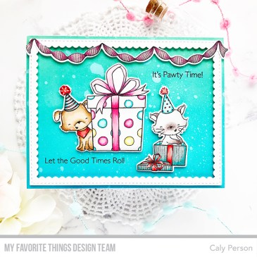 Hello, Friends! Welcome back to another countdown until the next MFT release! Everything will be available on Tuesday at 10am EST. Today’s project features a new Stacey Yacula set called Pawty Time. We’re continuing forward with the birthday theme and these images are just so much fun! I stamped and colored my images with Copic … More My Favorite Things – 4 Days Until the New Release – Pawty Time
