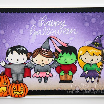 Happy Halloween!!! I made this card a while ago and wanted to save it for this fun day. This Trick or Treat Friends stamp set is the first Halloween-themed stamp set that I ever purchased. I just couldn’t resist these adorable, festive kids! I stamped the images using a watercolor-friendly ink, Versafine Onyx Black and … More Pretty Pink Posh – Trick or Treat Friends